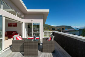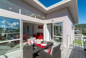 The second story sundeck is bound to be a popular hangout at this home, with lavish outdoor dining furniture, a BBQ and stunning views of Lake Taupo. The large fully fenced section features ample green grass and offers privacy during your stay.