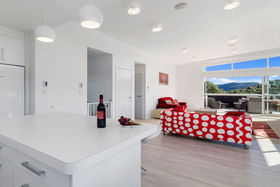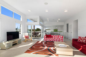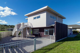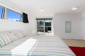 The interior is stylishly finished with bright colours and furnishings throughout the home. The home has two lounges spread across both floors and the bedrooms are large and inviting, with the upstairs bedroom also housing an ensuite bathroom and ranch sliders that open out to the sundeck. Perfect for those looking for some extra privacy.