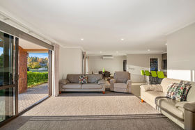 Smartly positioned on an elevated section that is literally a carpet of green as it has been professionally laid there is room for extra boat and motorhome parking to the rear. Three timber sheds on-site are positioned to the side creating an expanse of lawn that will be perfect for a volleyball net this summer. This is a peaceful and gracious setting with views of the trees on the course nearby and the home faces north-west for all day sun.