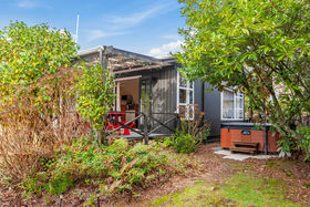 This cosy cottage is a fun zone - The lounge transforms to a media room when the screen is pulled down and there a wall of storage in the purpose-built book shelving. Open plan living has views to the garden with entry at the front deck and a covered veranda, complete with fairy lights, for outdoor dining at the rear. Throw open the doors at both ends and let the garden in. You will hear birdsong as the front lawn is screened from the street with mature plantings including a Kowhai tree where Tui's love to feed. Modern appointments include a heat-pump, double dish drawers and microwave in the kitchen. Two double bedrooms and a bathroom with shower over the bath, separate toilet and laundry area, complete the package inside. Extra guests can stay in the sleep-out that has a small lockup at one end and a covered deck. This private garden meanders down a bank on a full-sized freehold site. A perfect land-bank property for future development.