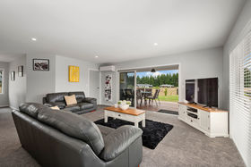 Completed in 2018 this is a fabulous opportunity to secure an immaculate, home with contemporary decor and current specifications such as BGC weatherboard and full insulation including the internal walls. Even the garage has insulated walls and auto-door with double glazed joinery so it could easily transform to another room if required? Attractively set back from the road it has also been built for the sun with glass doors to decking on both sides of the lounge. Dining alfresco under the covered veranda will be a daily option and is a pleasant vantage point from which to enjoy the views. The walkway to the trout stream reserve is handy and the International Golf Lodge can be seen from the front garden. The generous dining alcove has a large picture window that showcases the view to a reserve beyond while the smart galley kitchen has a trendy tiled splashback and pendant lighting above the breakfast bar.